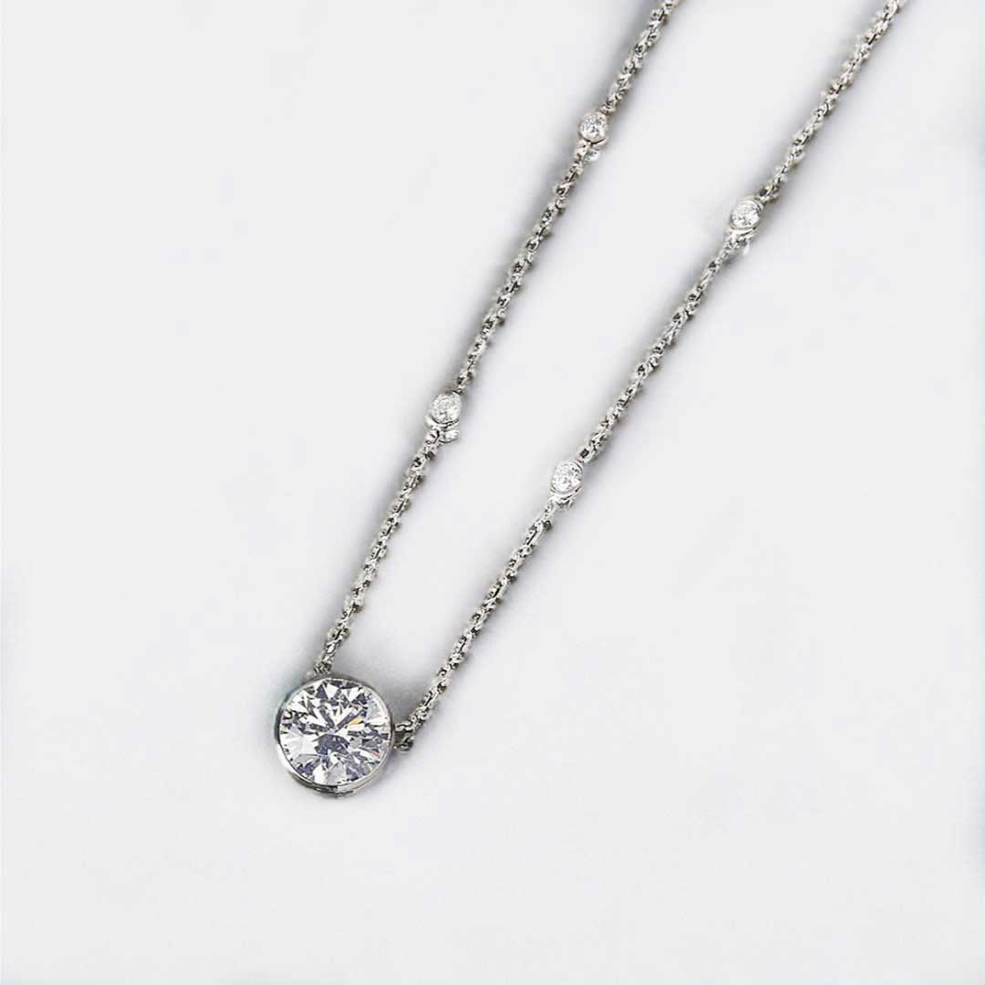 This stunning White Gold Diamonds By The Yard Chain is a perfect blend of elegance and versatility. Featuring brilliant cut diamond pendants that glimmer with every movement, this piece showcases bezel-set diamonds artfully spaced throughout the chain, adding a touch of understated luxury. The minimalist design allows the diamonds to shine while complementing any outfit, making it an ideal accessory for both everyday wear and special occasions. Available in various lengths and customizable in different metals, this necklace offers a personalized touch, ensuring it will become a cherished addition to your jewelry collection.